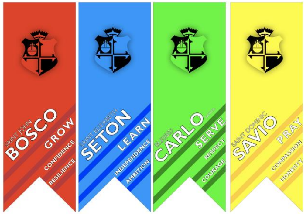Staff and pupils alike are assigned to a house named after one of four Saints: Bosco, Seton, Carlo or Savio.