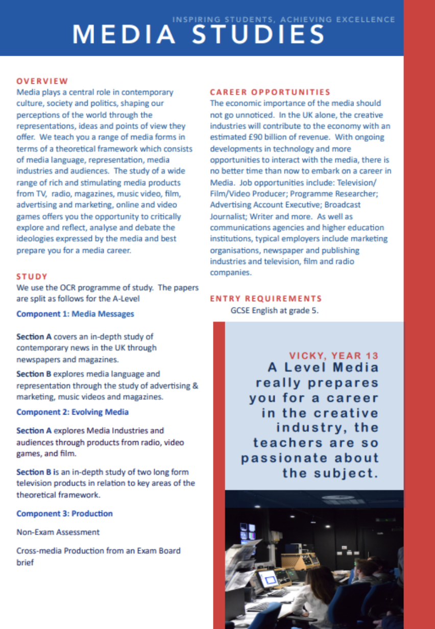 KS5 Media Studies Learning Journey