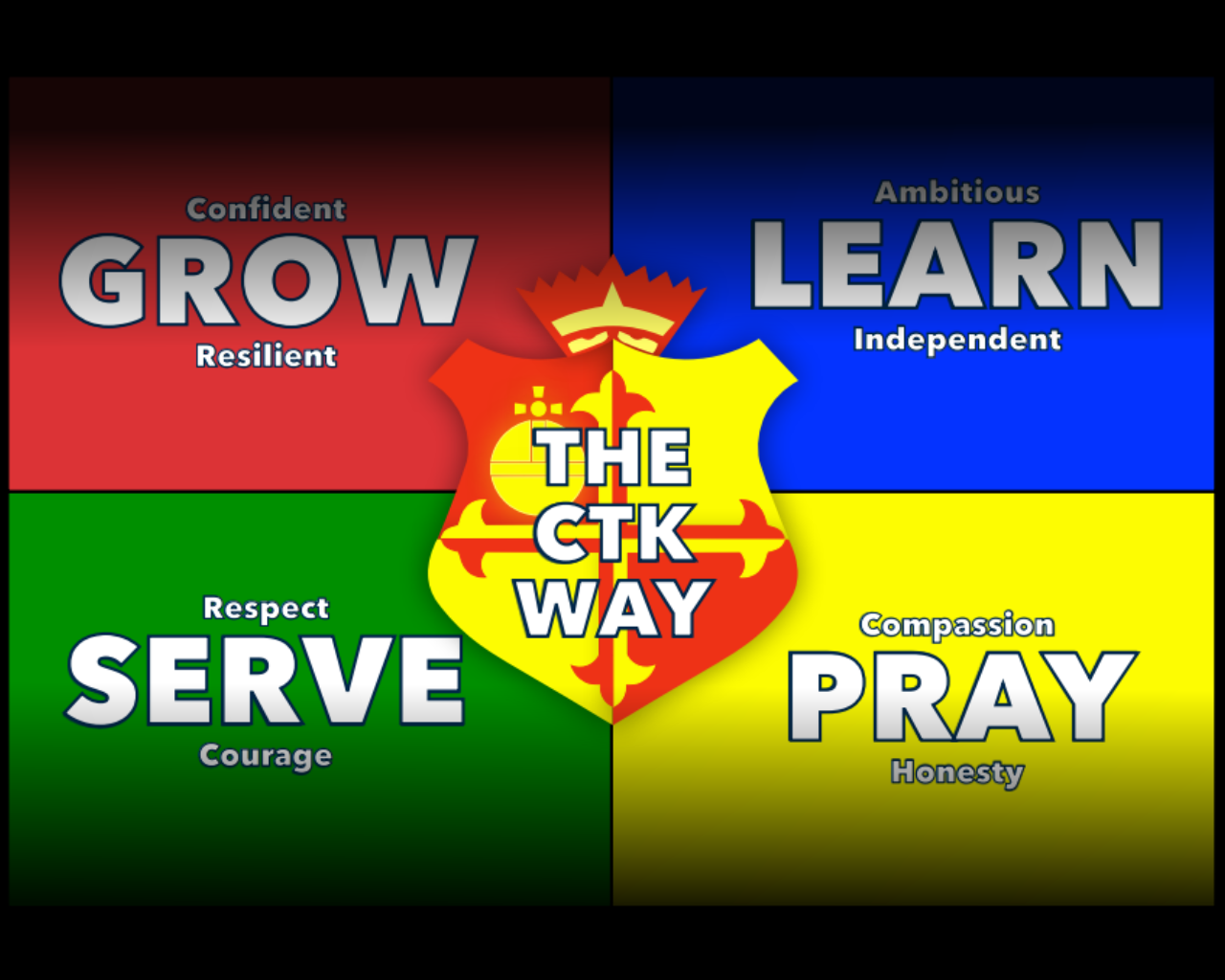 Within our Mission Statement are the four pillars of our CTK Way: to grow, to learn, to serve and to pray. They are the foundation which we build our mission on, embedded in our Houses and our rewards and are lived out in our daily activities at school.
